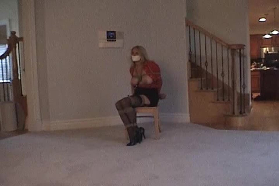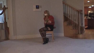 3:47 Minute Bondage Video: Breast Harness, Tape Gag, and Stockings
